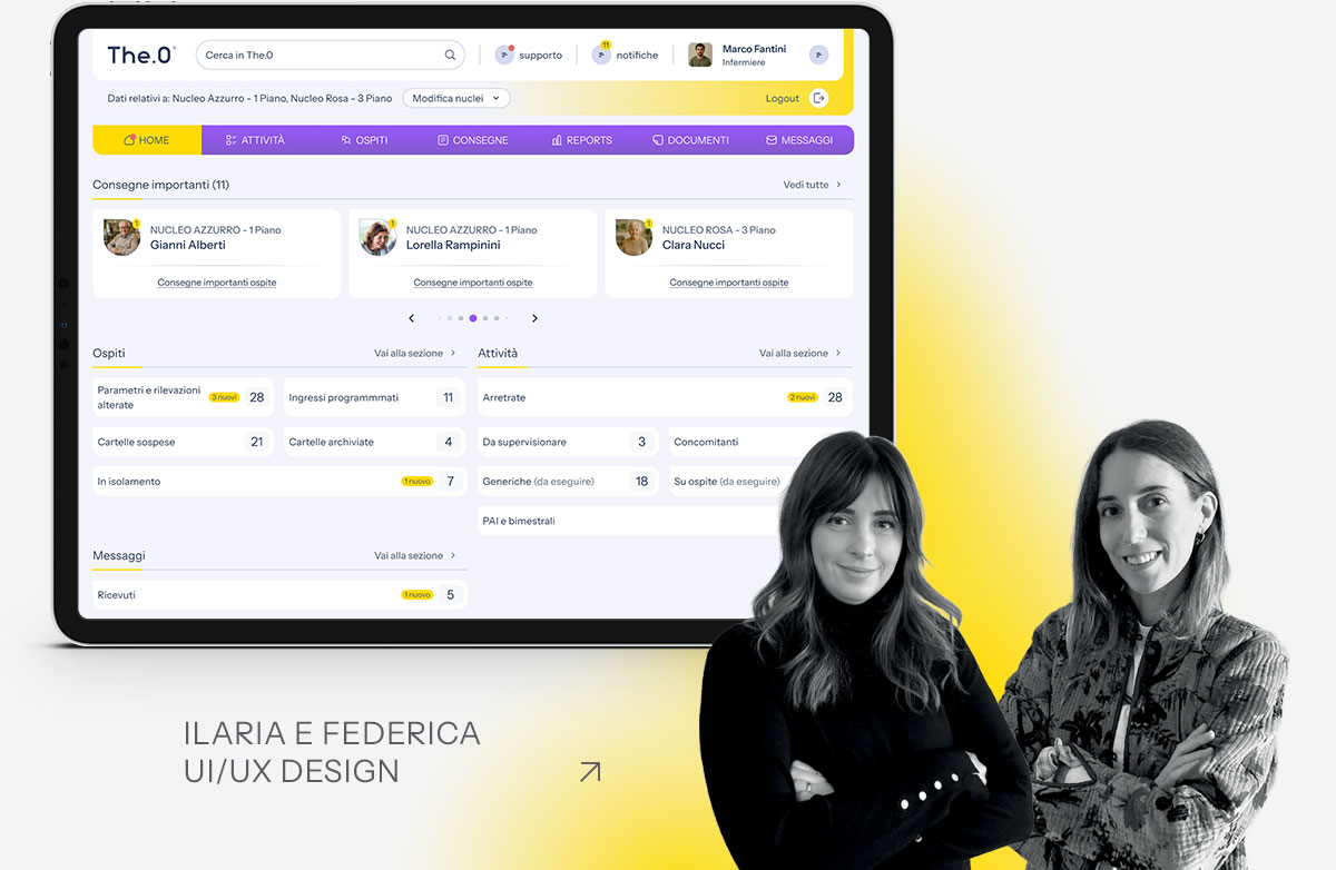 «Non siamo partite disegnando, ma ascoltando e con una domanda in testa: “Cosa possiamo fare per alleggerire davvero la giornata di chi usa The.0?” La risposta non stava in un wireframe, ma nelle persone. Siamo entrate nelle strutture, abbiamo osservato gli operatori al lavoro, raccolto i loro commenti, le loro frustrazioni, i loro “sai cosa mi rallenta?”. Abbiamo analizzato ticket e richieste di assistenza, non per cercare errori, ma per riconoscere pattern, abitudini, punti di attrito. Da lì è iniziato il vero redesign: non di interfacce, ma di esperienze. Abbiamo ripensato i flussi a partire dai gesti reali — quelli ripetuti ogni giorno — con un obiettivo chiaro: ridurre lo sforzo, restituire tempo. The.0 stava già facendo molto, ma poteva avvicinarsi ancora di più a chi lo vive quotidianamente. Da quel momento tutto è ruotato attorno a questa semplice idea: rendere il lavoro un po’ più leggero, un po’ più umano.»