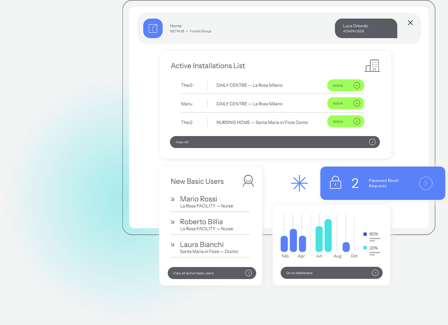 NetHUB is the unified access portal developed by Netpolaris for groups and providers managing multiple care service units (e.g. nursing homes, hospices, day care centres, home care services) or facilities with multiple sites.